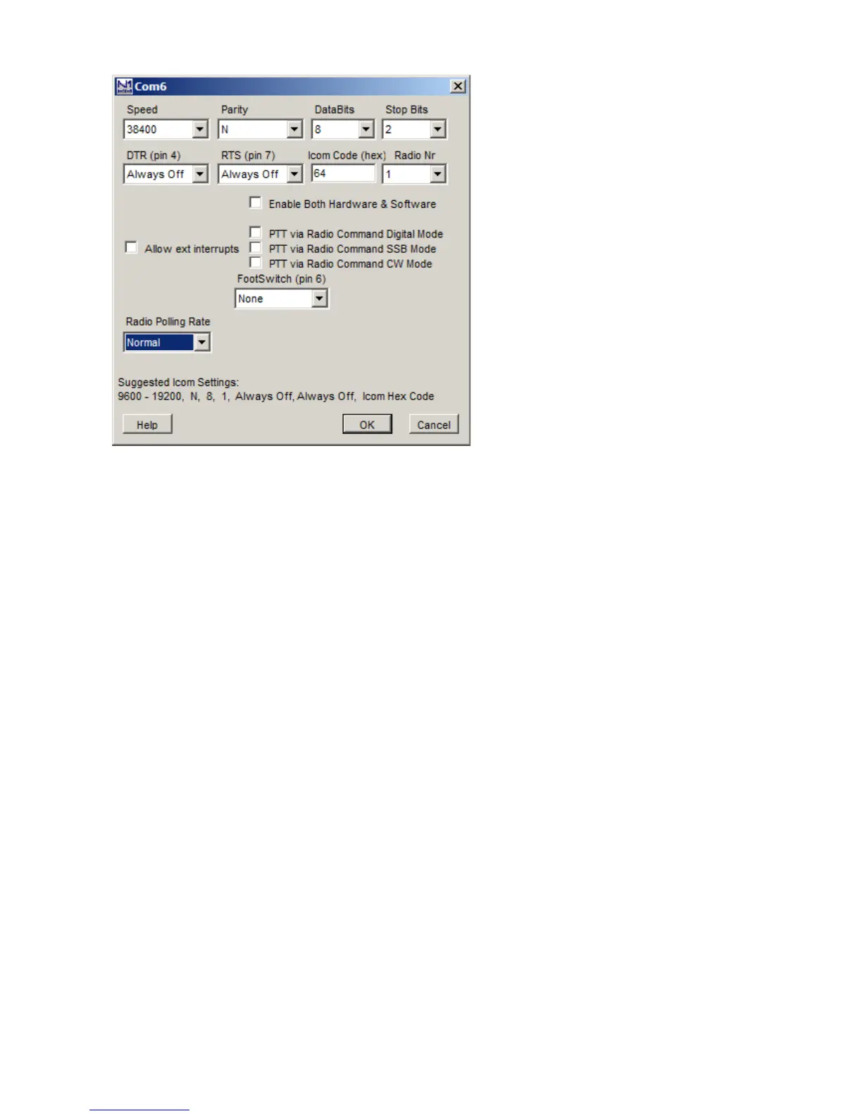 COM port to match the port of the CI-V Router. All other settings can be configured as desired.