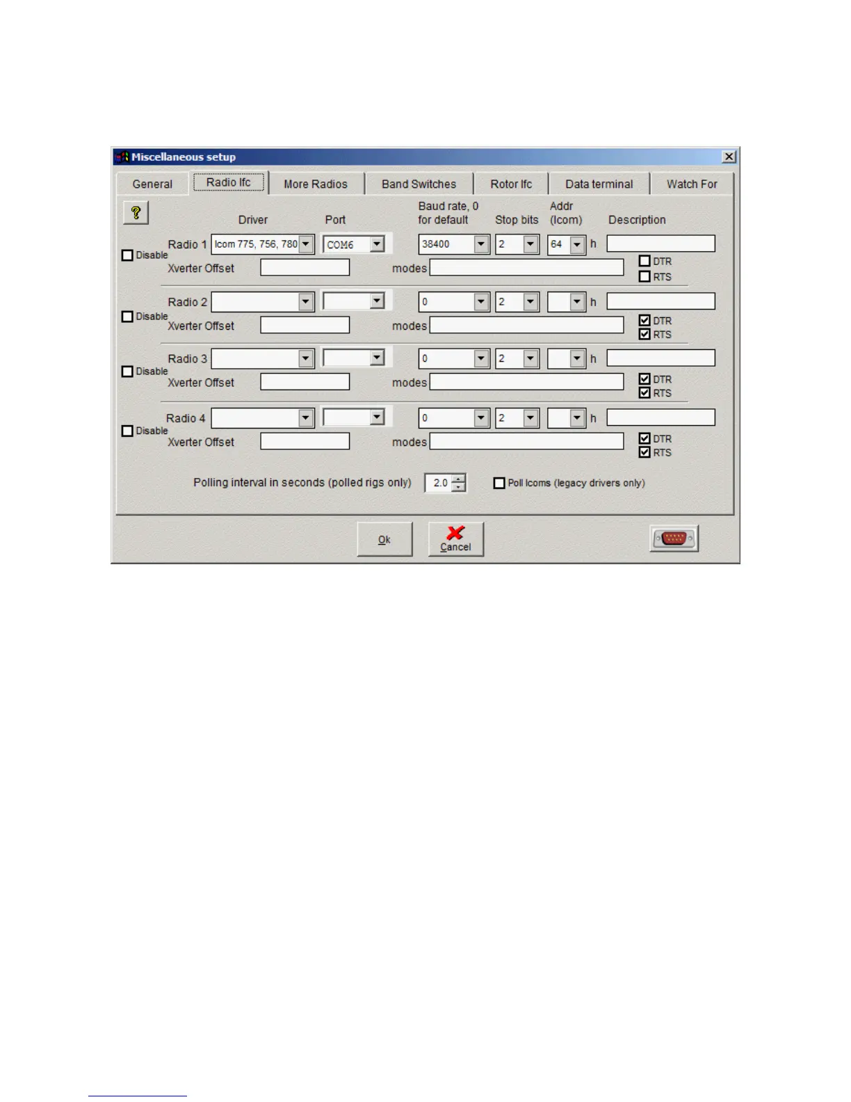 screen shot as configured for my 756Pro2. Note that DTR and RTS must be unchecked. Poll