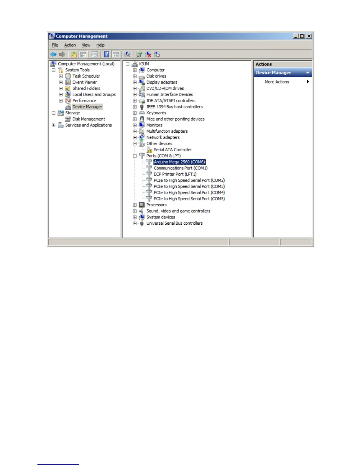 computers "Computer Management" screen. Please note which COM port was assigned to Arduino