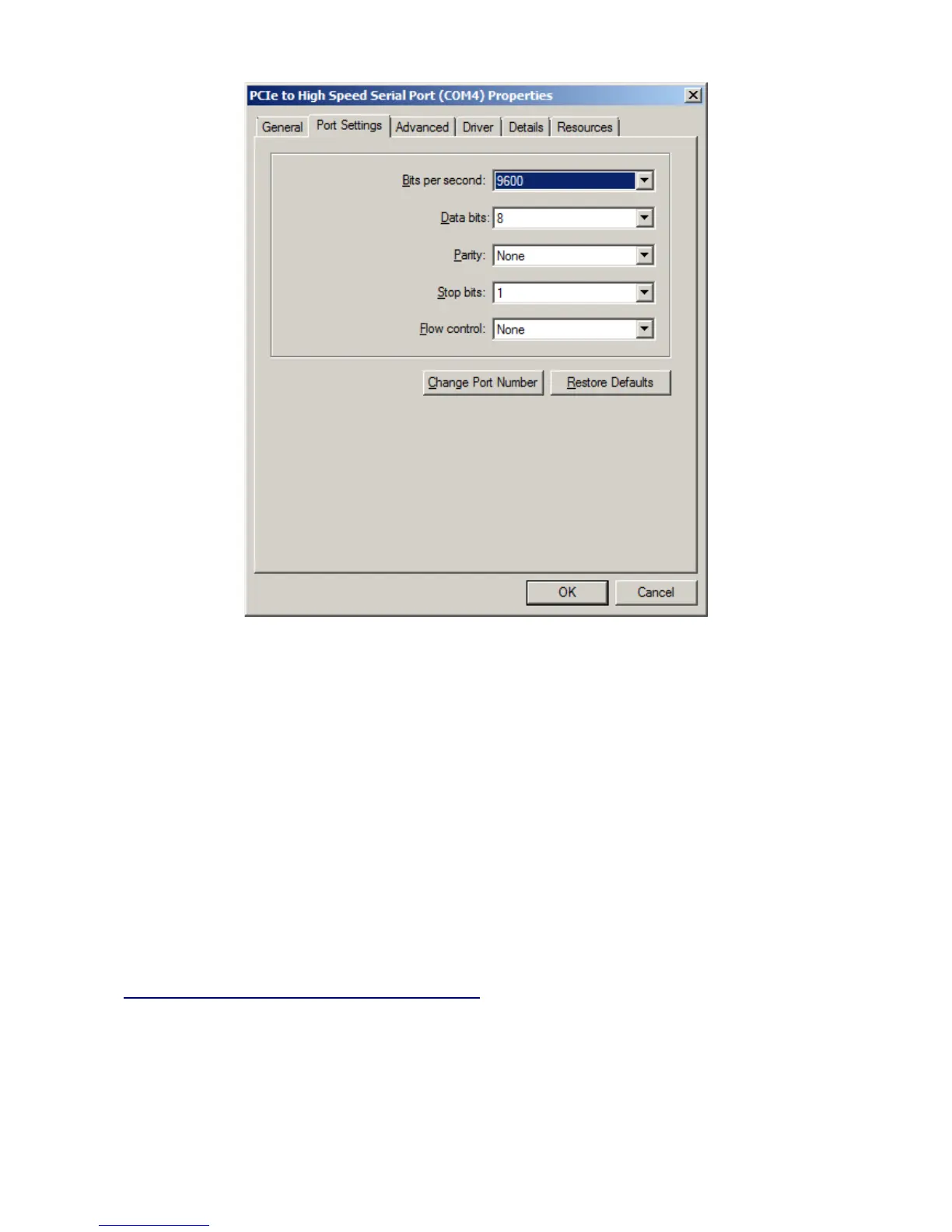 Now select the Change Port Number button. The rest of the parameters are the defaults and are