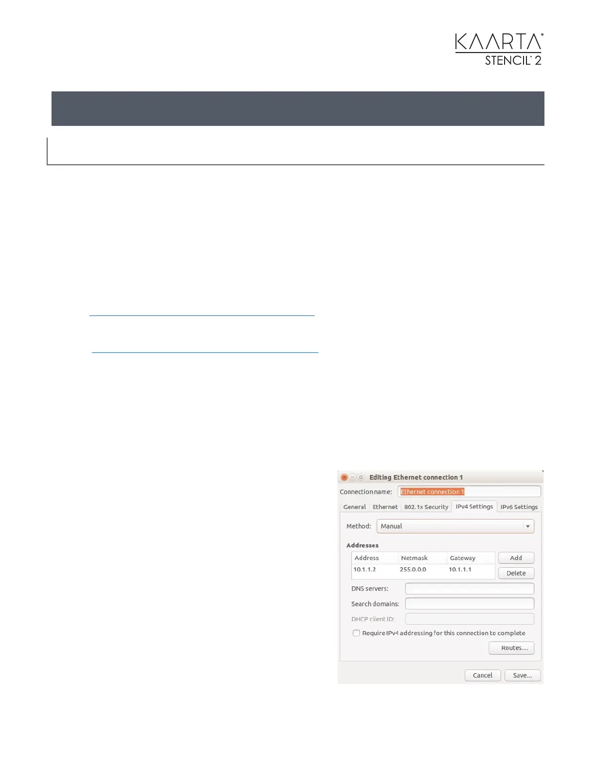 Connect the computer to Stencil 2 with an Ethernet cable. In the Ubuntu network manager on