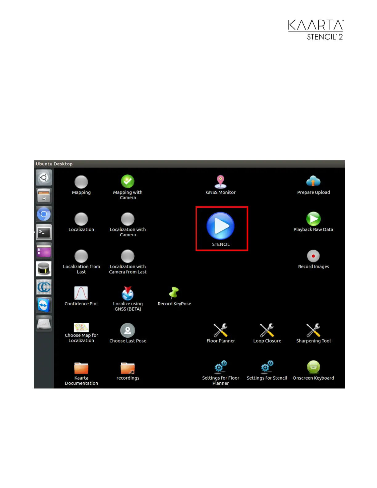 The Start / Stop icon is a large play icon that starts and stops mapping/localization according the