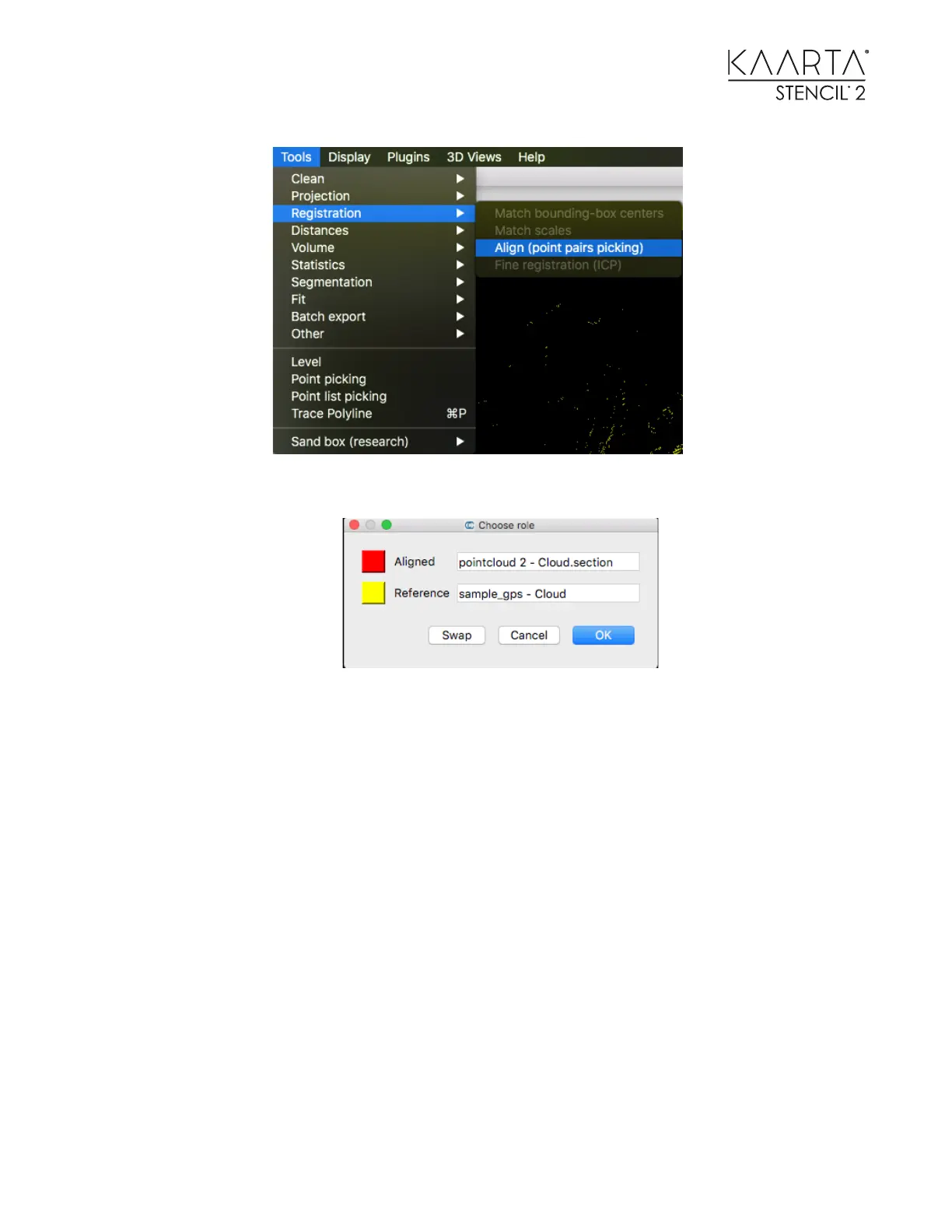3. Start picking the corresponding points in each cloud. When you have the