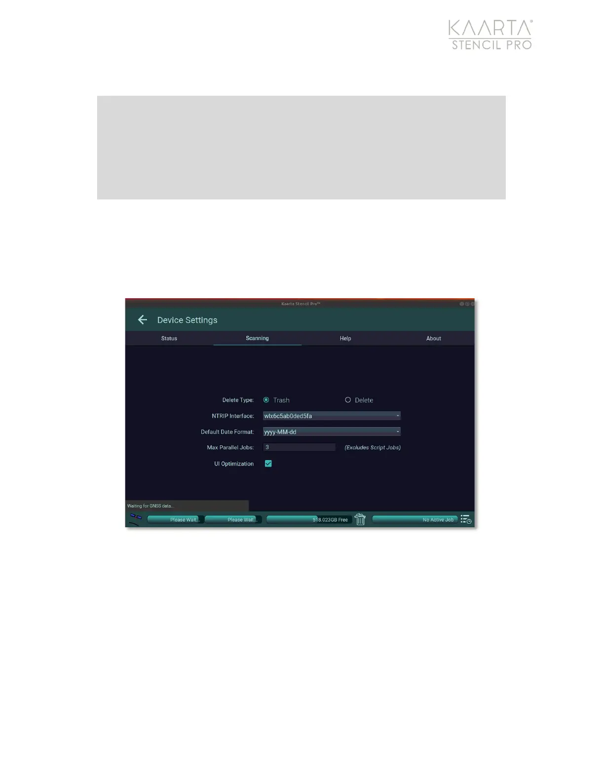 Figure 74: NTRIP Interface on Scanning tab of Device Settings.