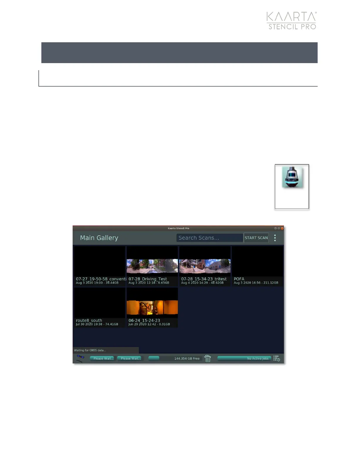 Pro UI. The UI opens to the Main Gallery screen where scans are displayed
