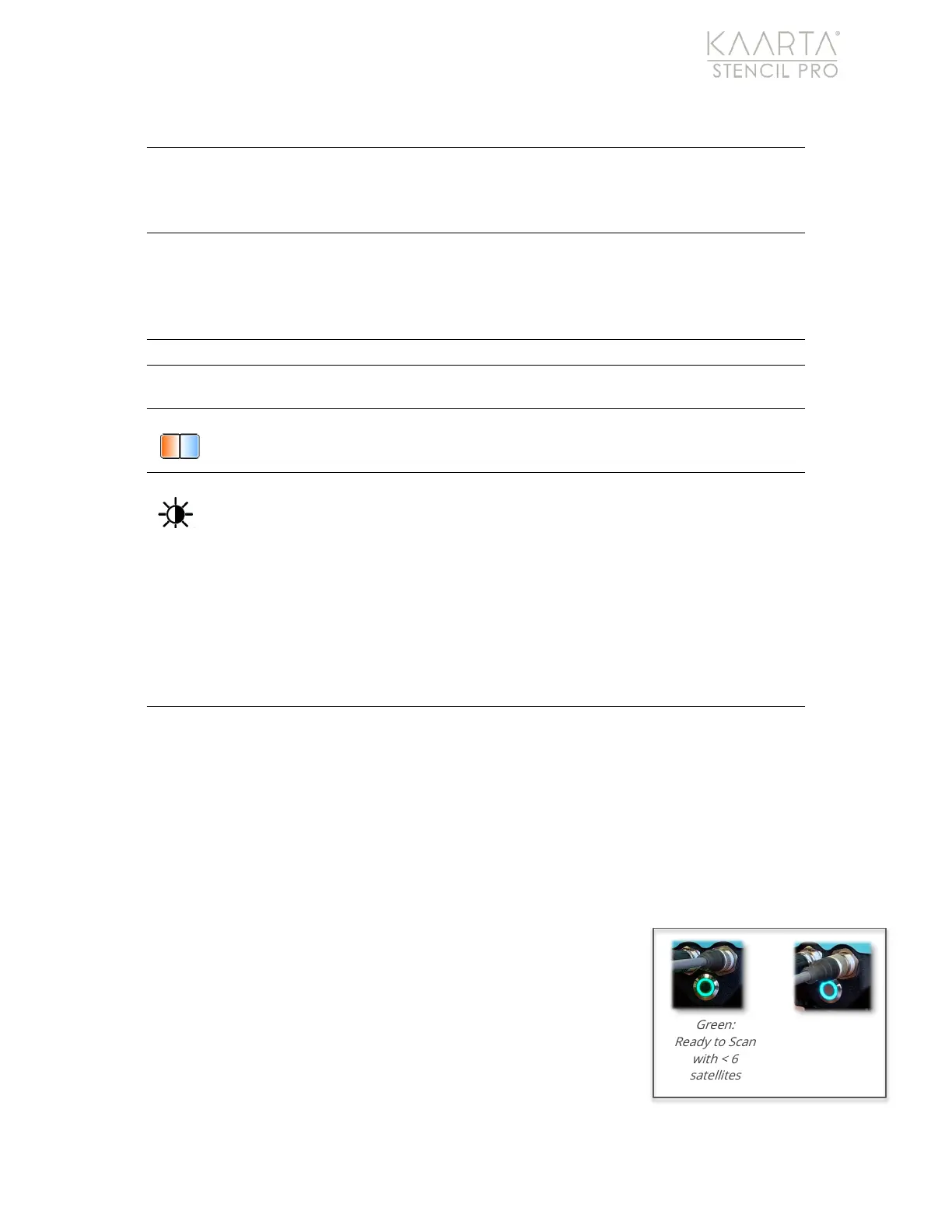 the system is ready to scan. Green indicates less than 6 satellites