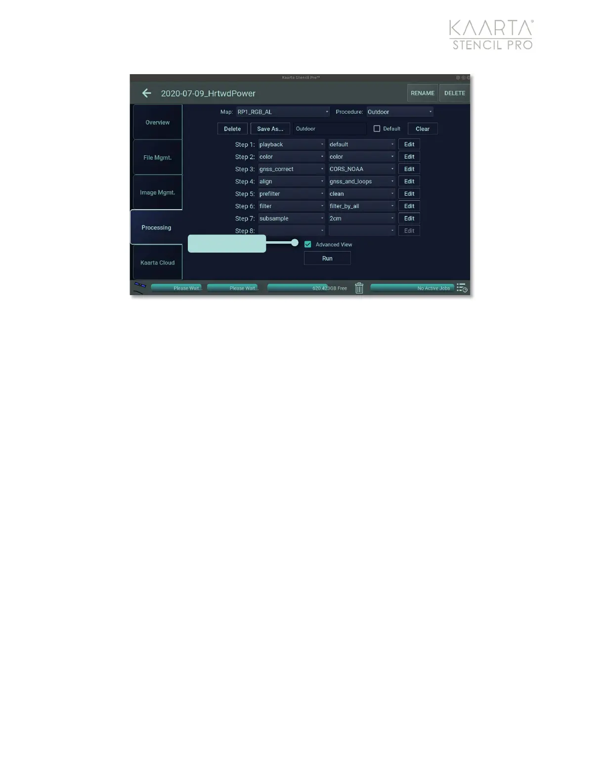 the Run button at the bottom of the screen to begin processing.
