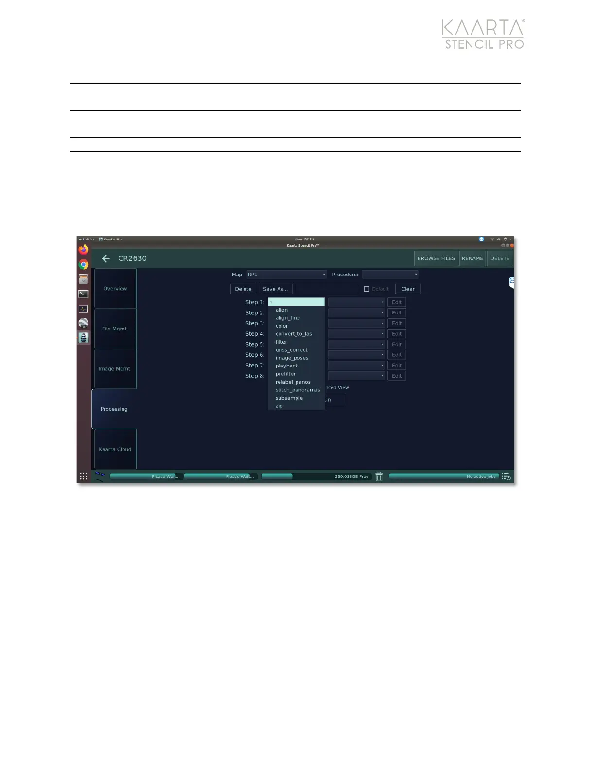 Processes available on Stencil Pro include align, fine align, color, convert to LAS, filter,