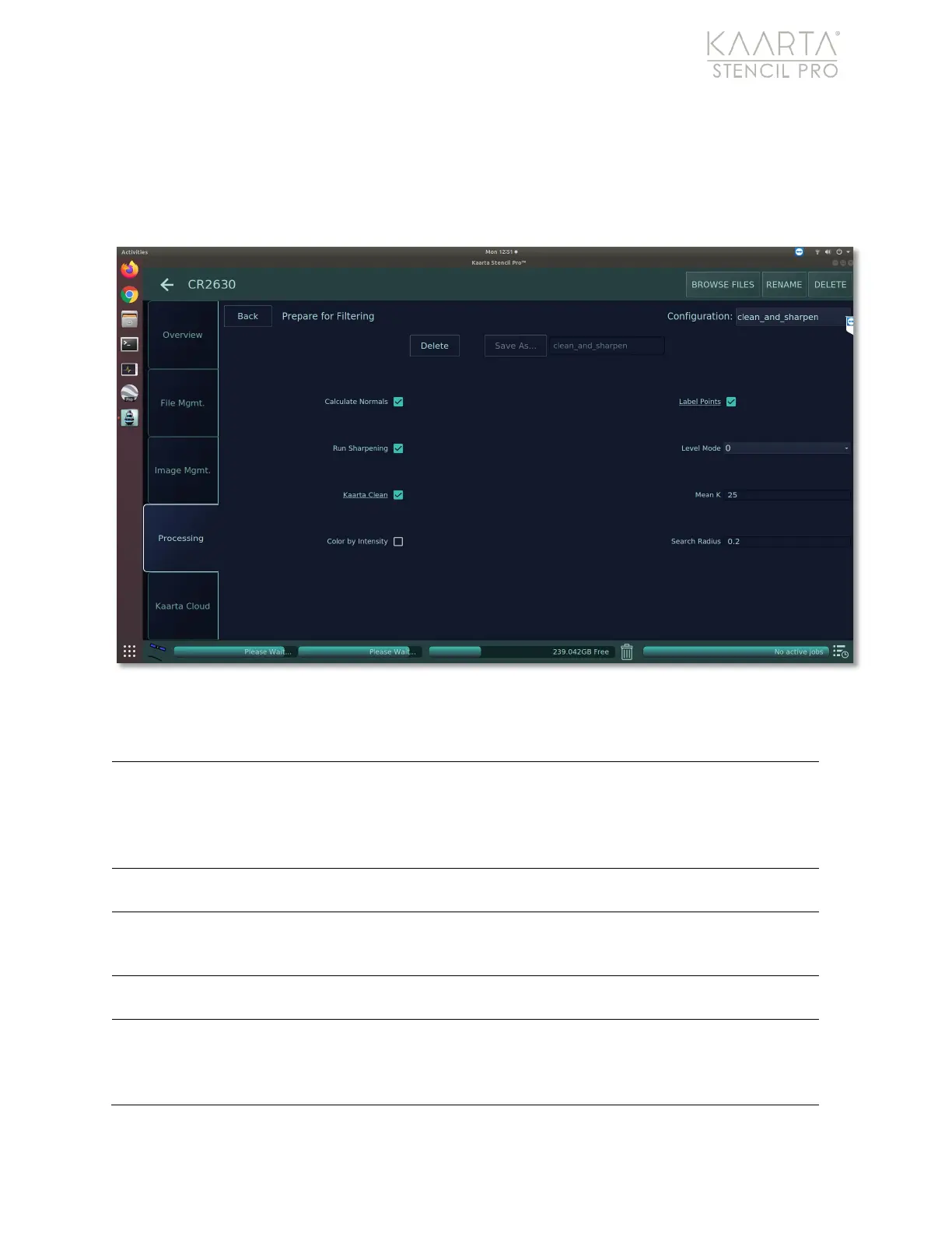 process by enabling Kaarta Filter 3. See Filter on page 85