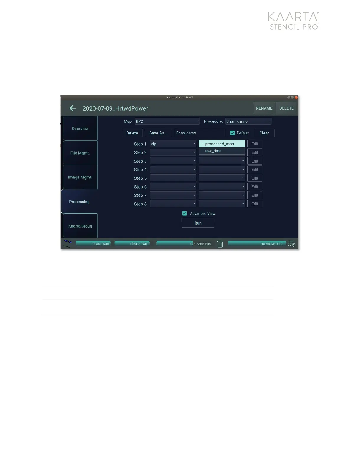 There are two views for processing, Standard and Advanced. By default, the Advanced