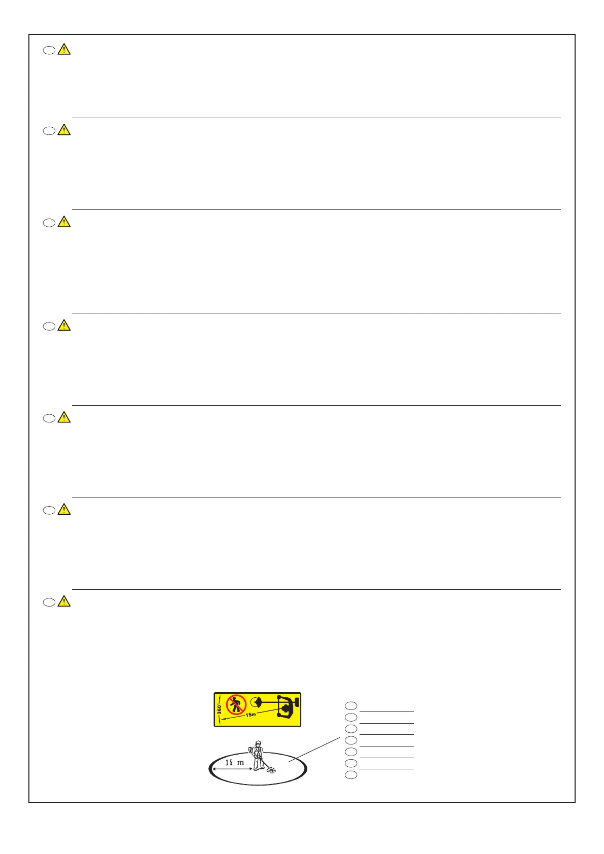 fisiche o danni strutturali. L'area entro un raggio di 15 m dall'operatore è una zona di pericolo. Non lasciare che persone o animali