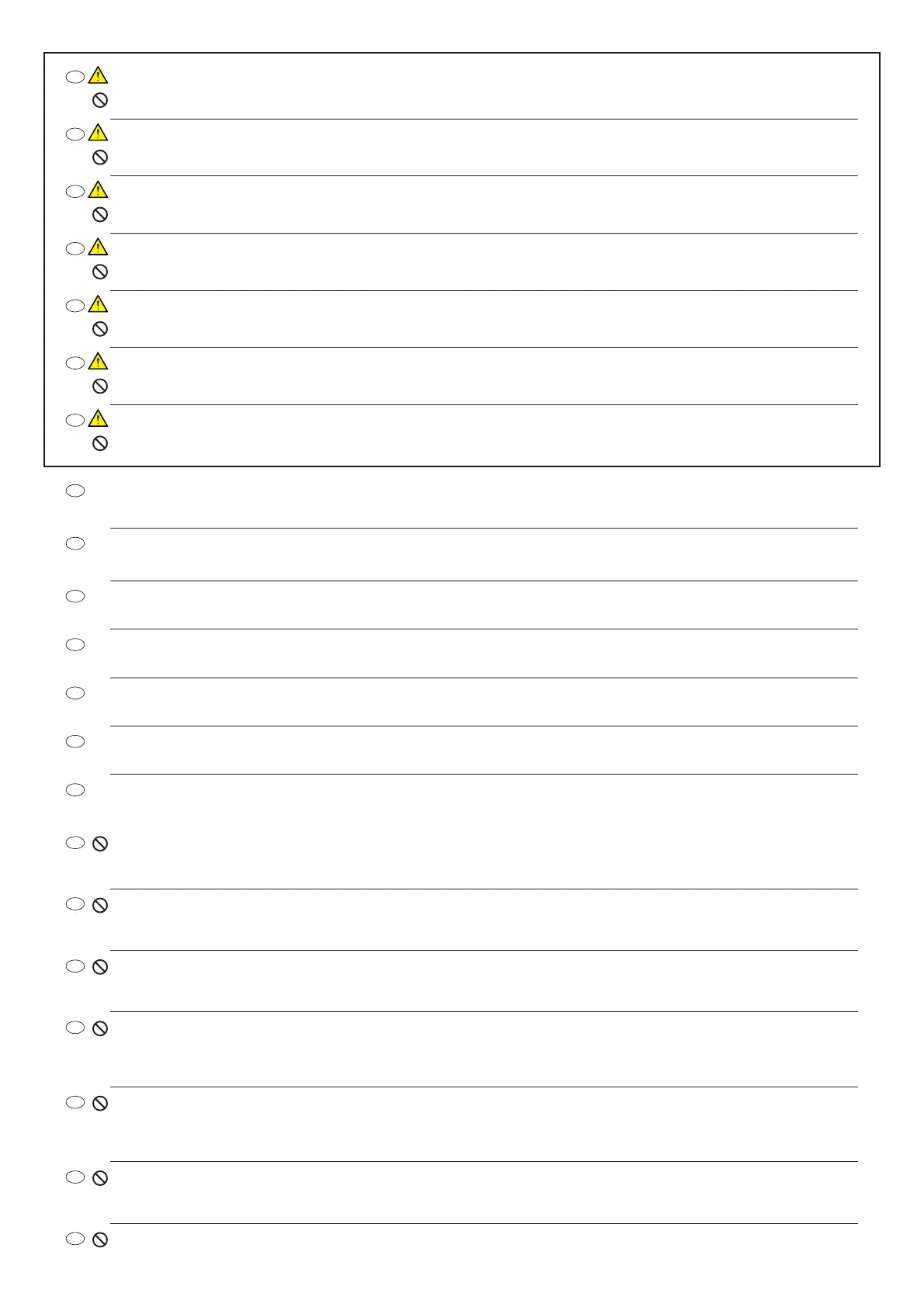 Arbeiten Sie nicht, wenn die Schilder, Schutzeinrichtungen oder sonstiges nicht eingebaut sind. Prüfen Sie, ob diese Sicherheitsschilder richtig