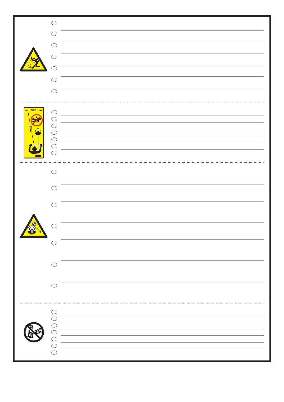 Beware of thrown objects. Due to the risk of injury caused by objects flying from the cutting attachment, do not let people or