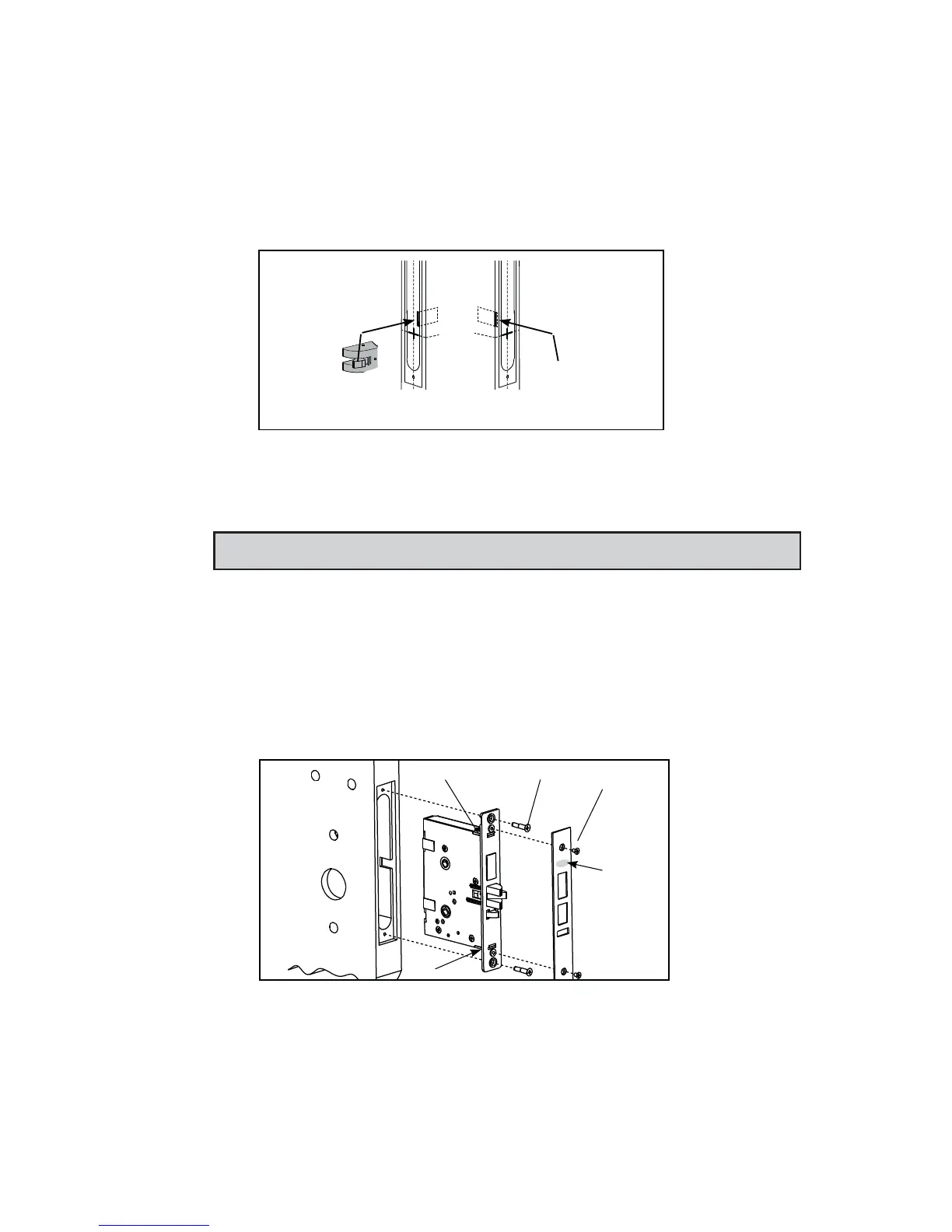 Install the mortise with 2 screws (Q). Use wood screws for wood doors
