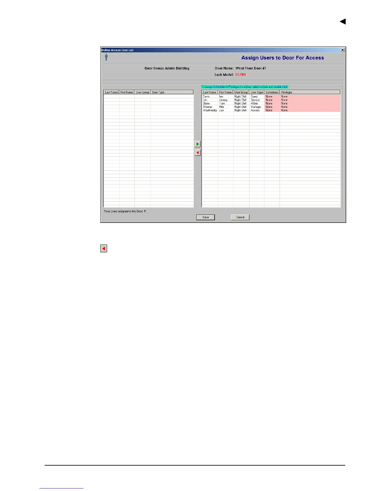26. Double-click a user to assign Access Schedules and Privileges to a user. The software