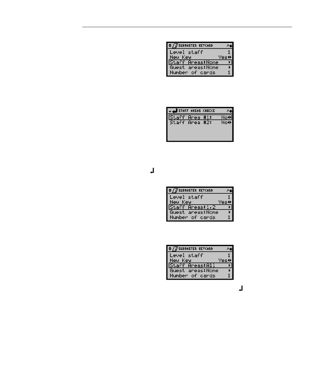 be encoded on the staff keycard. When the areas are set accordingly, press
