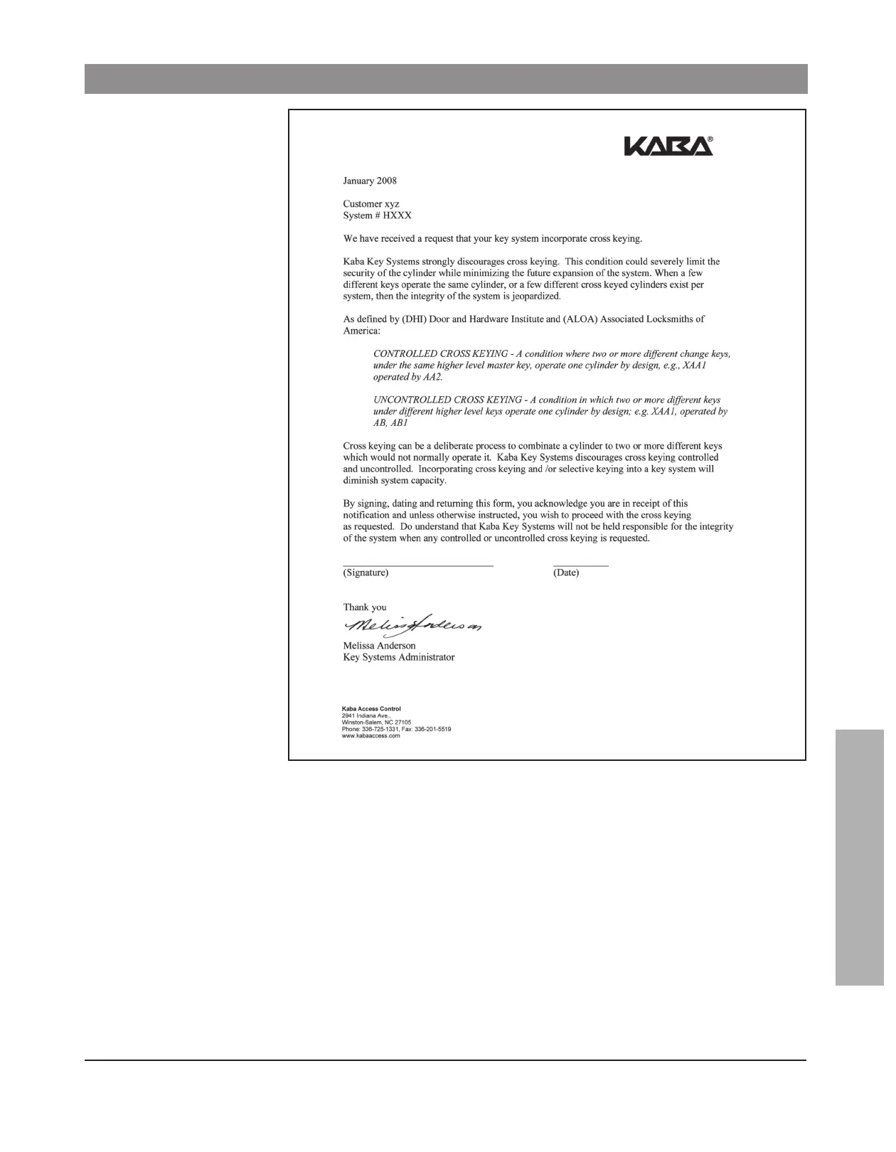 cross keying of any sort. If Kaba