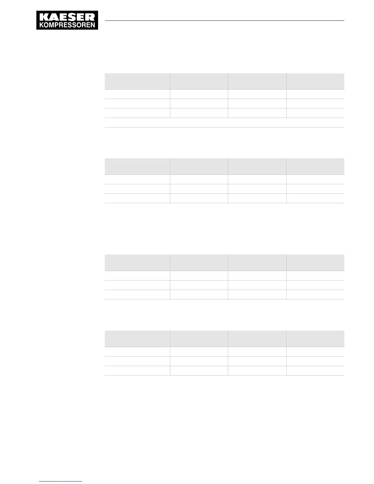 KAESER ASK 27 - Delivery; Tab. 10 Pressure Relief Valve Activating Pressure (50 Hz); Tab. 11 Pressure Relief Valve Activating Pressure (60 Hz); Tab. 12 Delivery (50 Hz)