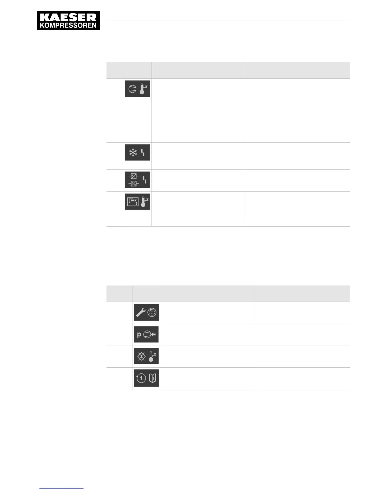 KAESER ASK 27 - Warning Messages; Tab. 49 Alarm Indications; Tab. 50 Warning Messages