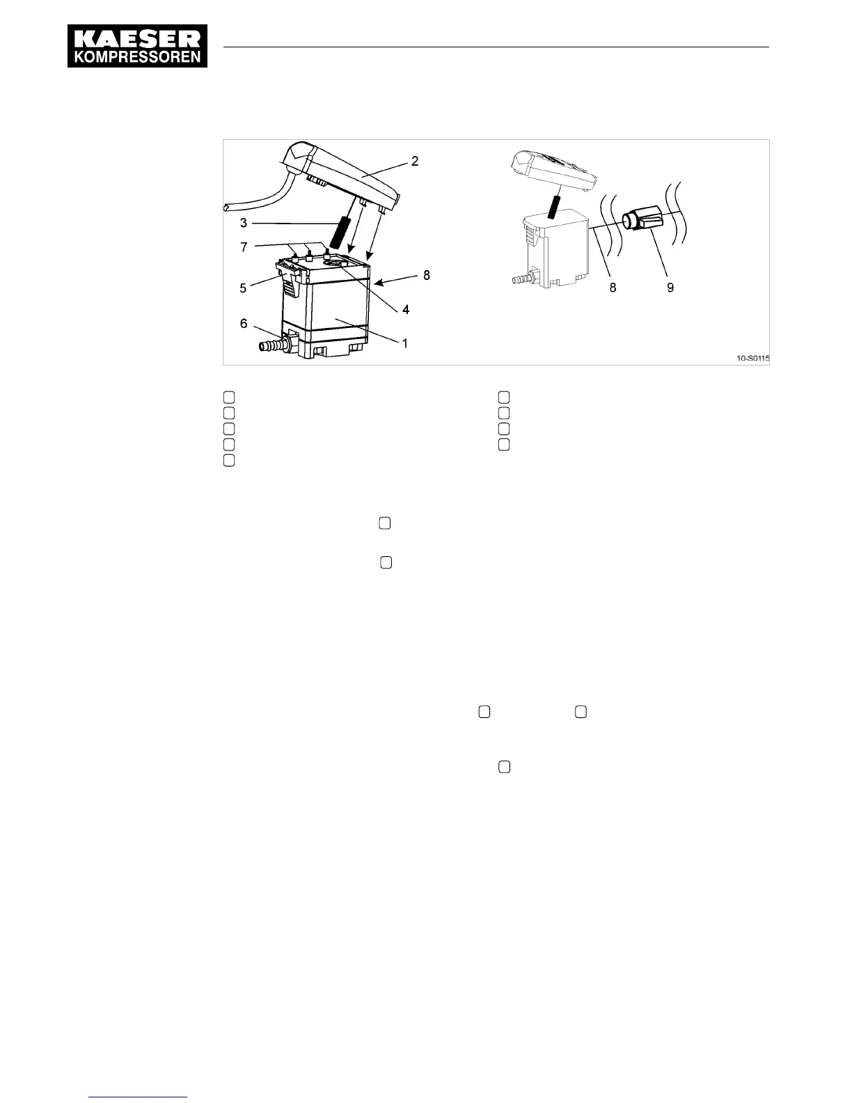 1. Close the shut-off valve 9 upstream of the condensate drain.