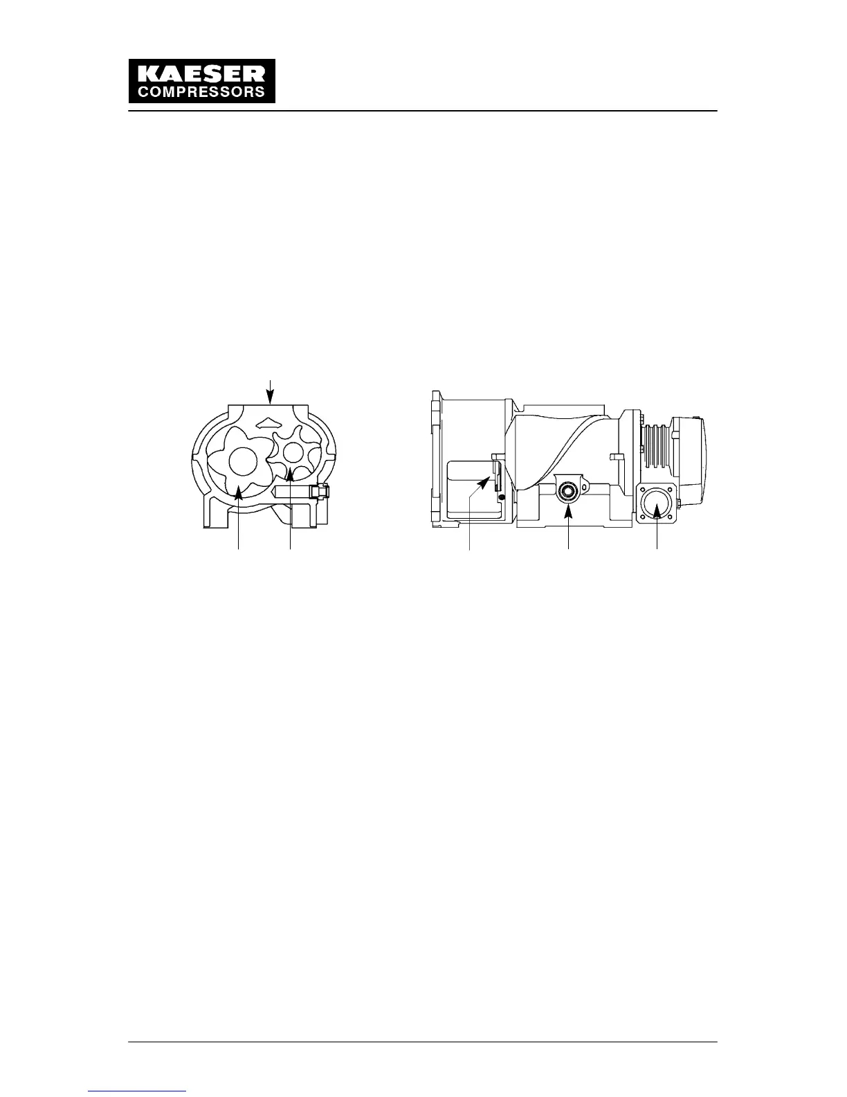 tion bearings. The compressed air and oil mixture leaves the airend via the discharge port.