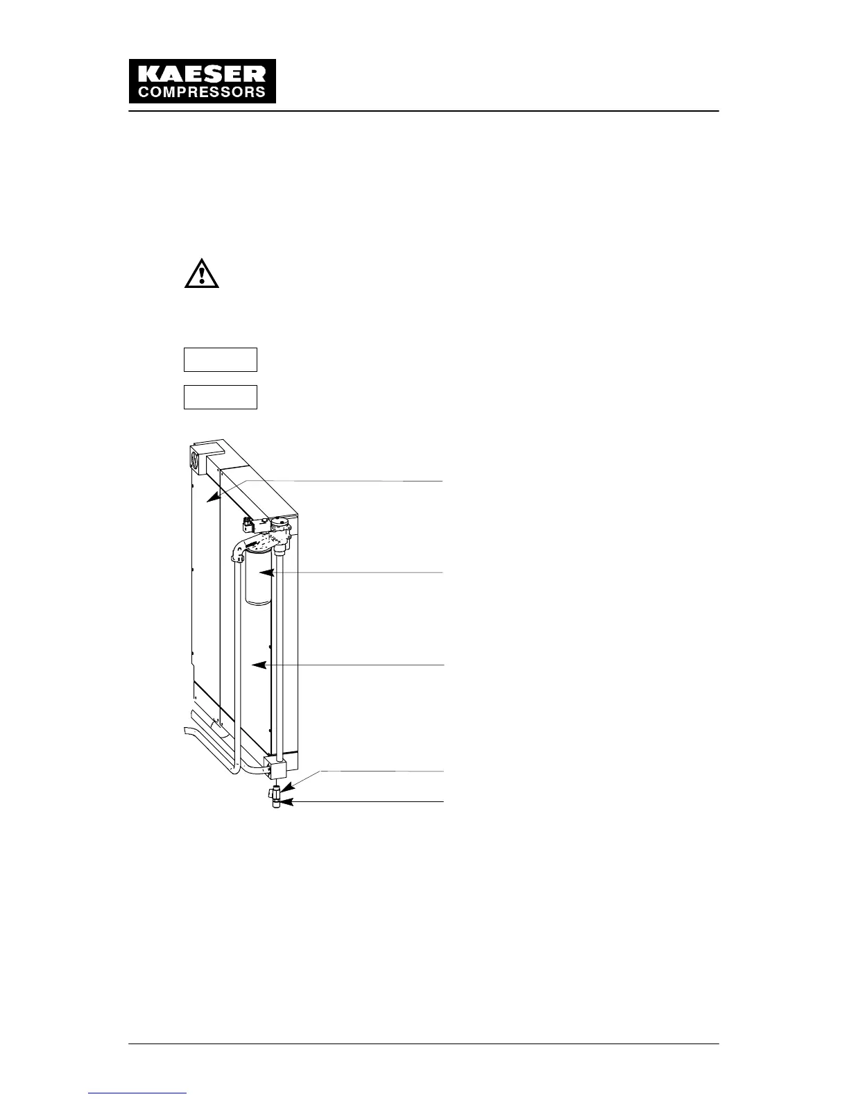 The oil and air aftercooler must be checked for clogging regularly. Heavy contamination