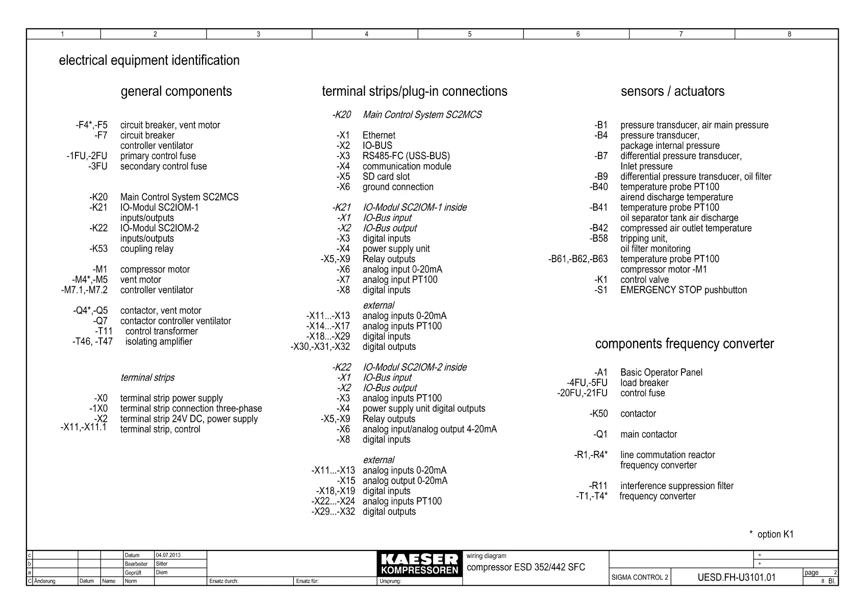KAESER ESD.2C - Electrical Equipment Identification; General Components; Sensors;Actuators; Terminal Strips;Plug-In Connections