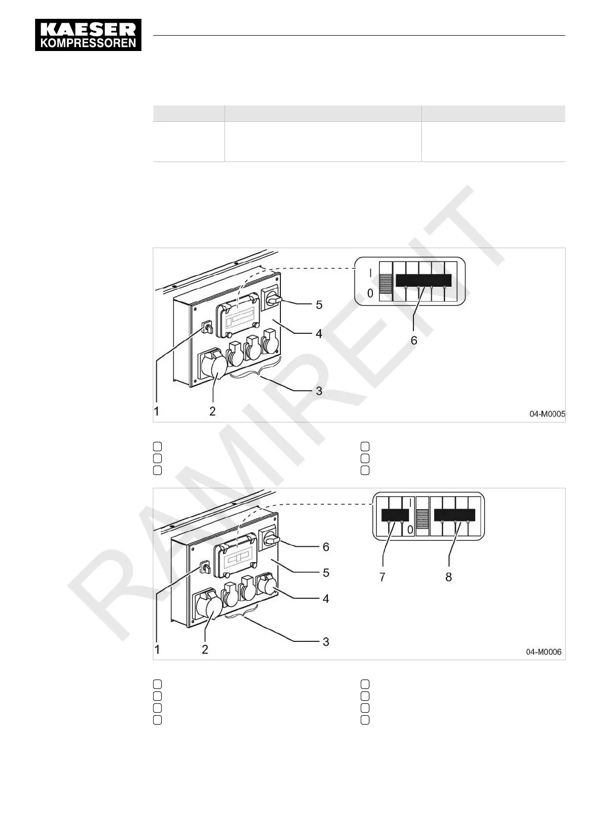 The switches, fuses and outlet sockets for electrical consumers are located on the generator con‐