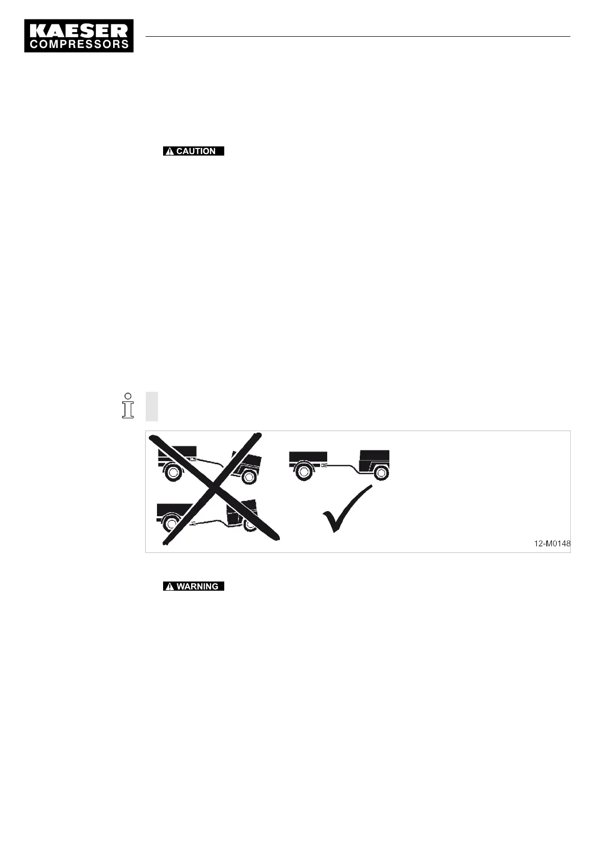 ➤ Do not couple up the machine at an angle to the towing vehicle.