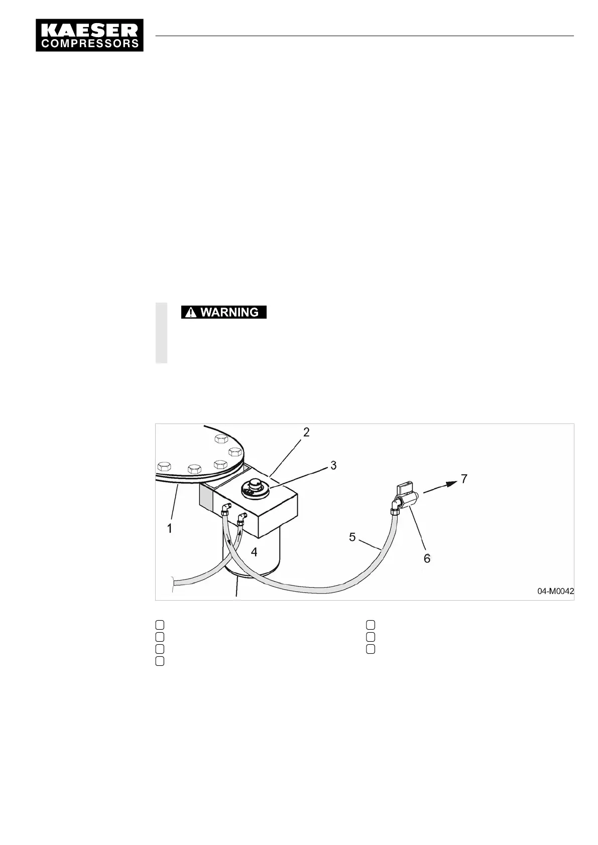 Beneath the respective drain plugs for the separator tank and oil cooler, engine oil sump, radiator