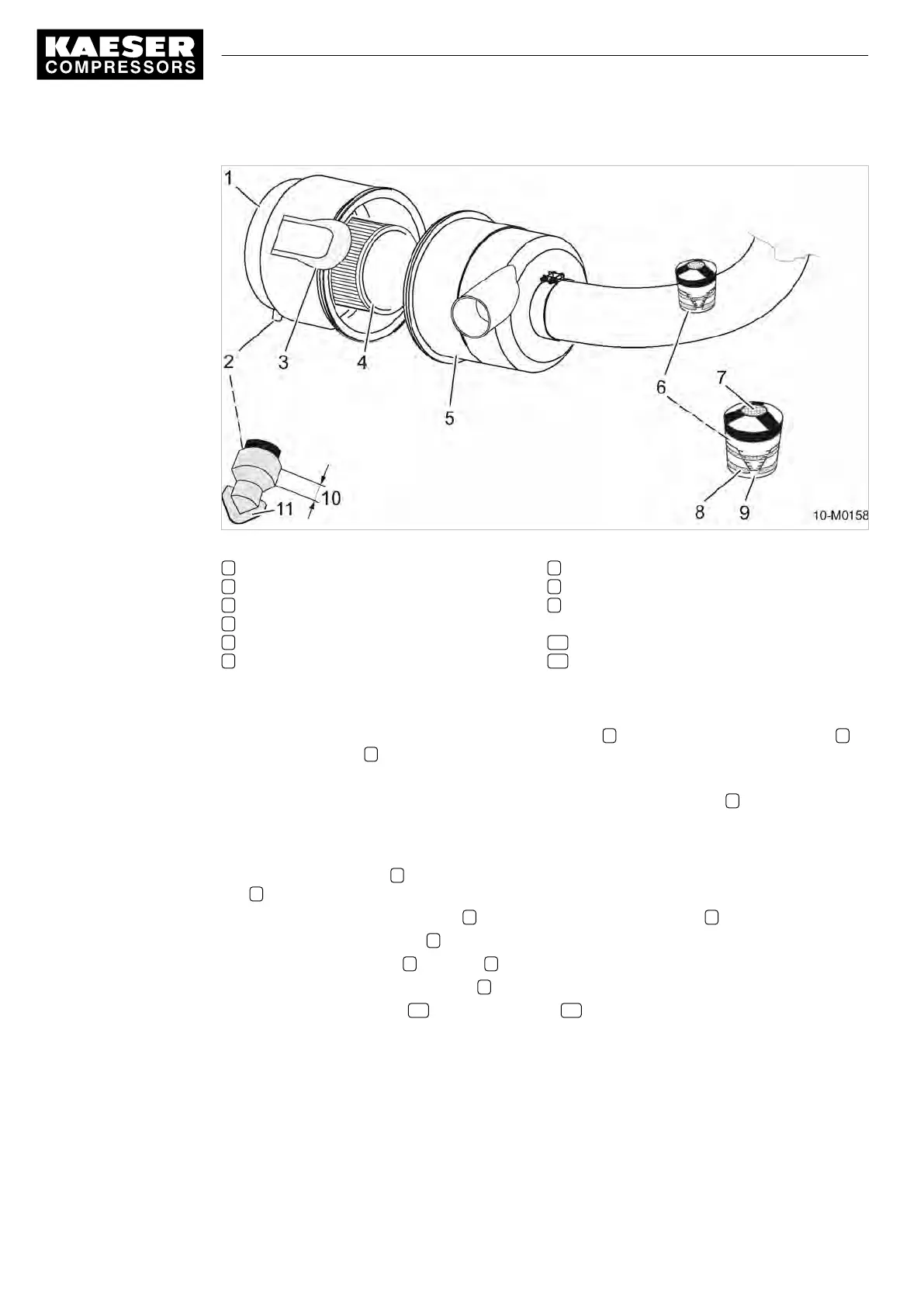 Air filter maintenance is necessary when the yellow piston 9 inside the maintenance indicator 6