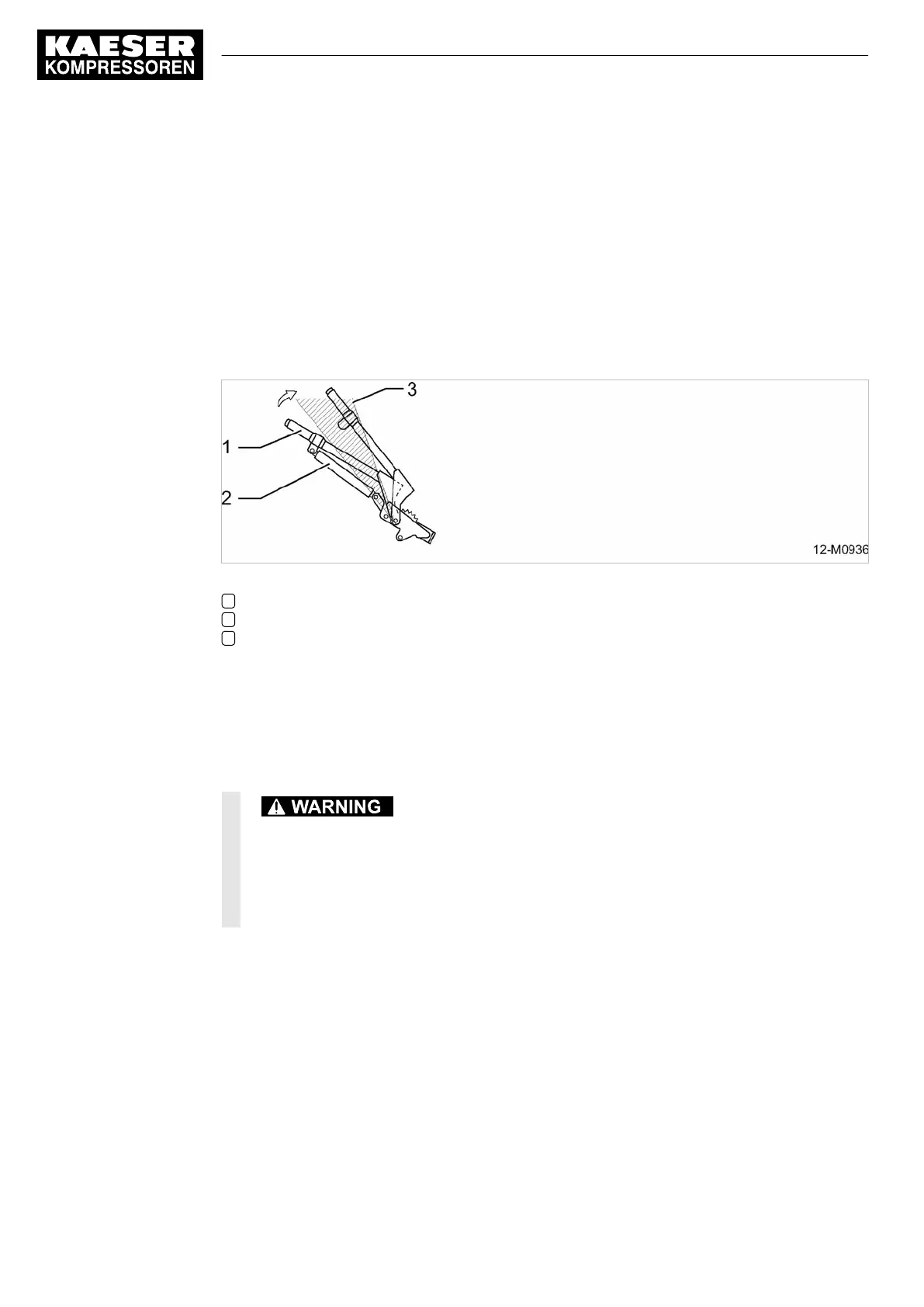 positioned. The gas spring automatically increases parking brake force if the machine rolls back‐