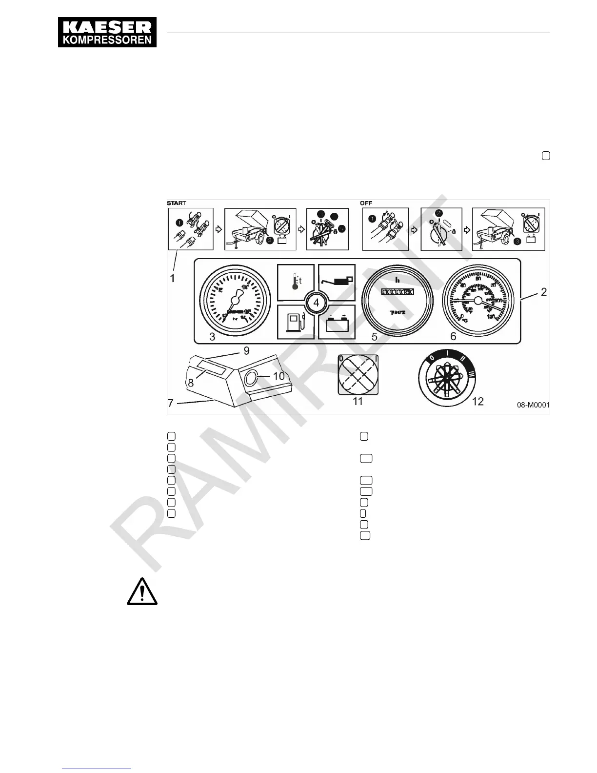 Pictograms on the instrument panel illustrate the starting and stopping procedures, see also item 1