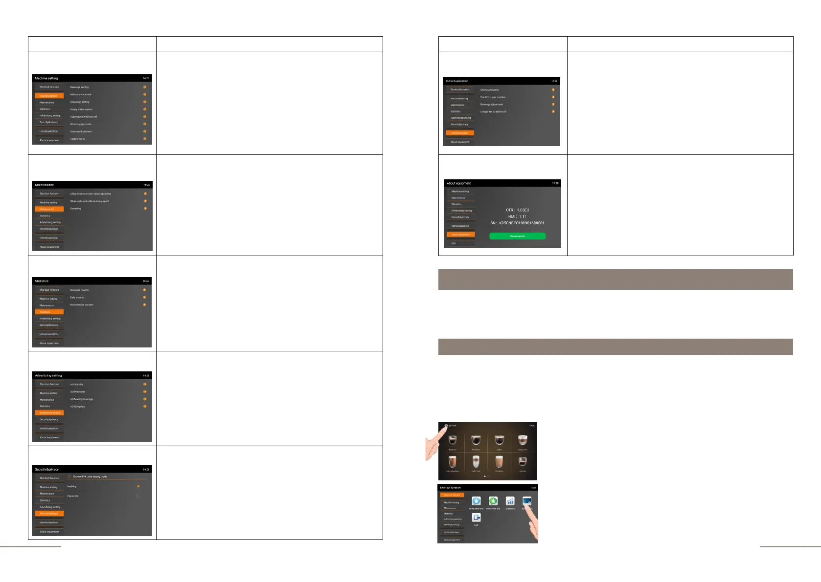 In this menu item, you can force the rinsing of the brewer and the Auto-Cappuccino