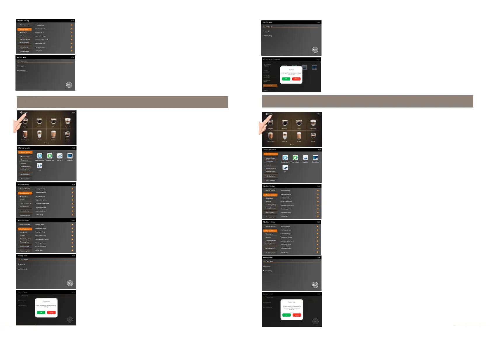 Factory reset. ALL BEVERAGES item