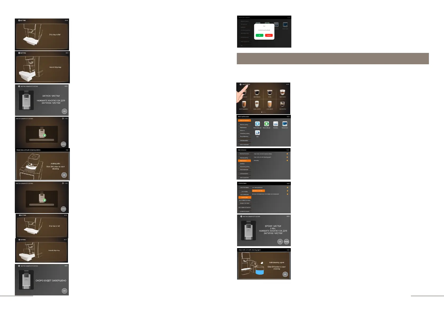Display message: CLEANING START. PRESS THE OK