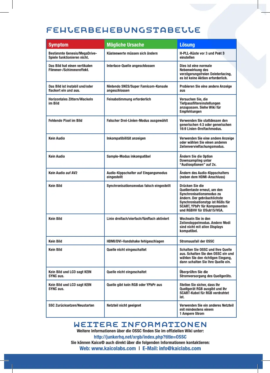 Kein Bild HDMI/DVI-Handshake fehlgeschlagen Stromausfall der OSSC