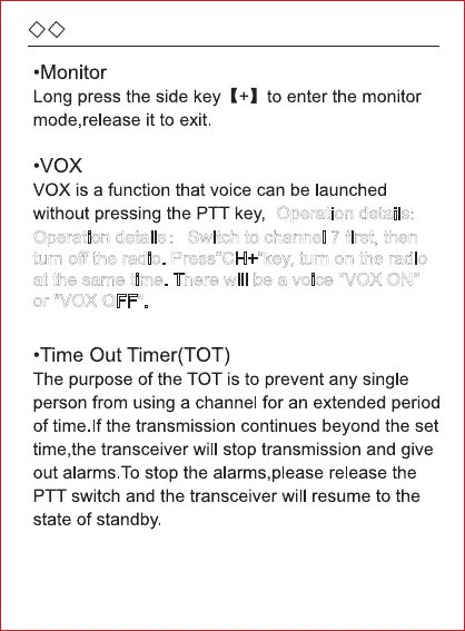f the radio. Press“CH+”key, turn on the radio