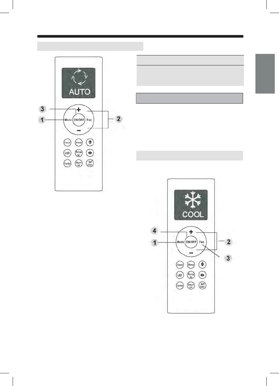 wybiera tryb chłodzenia, wentylatora, ogrzewania lub