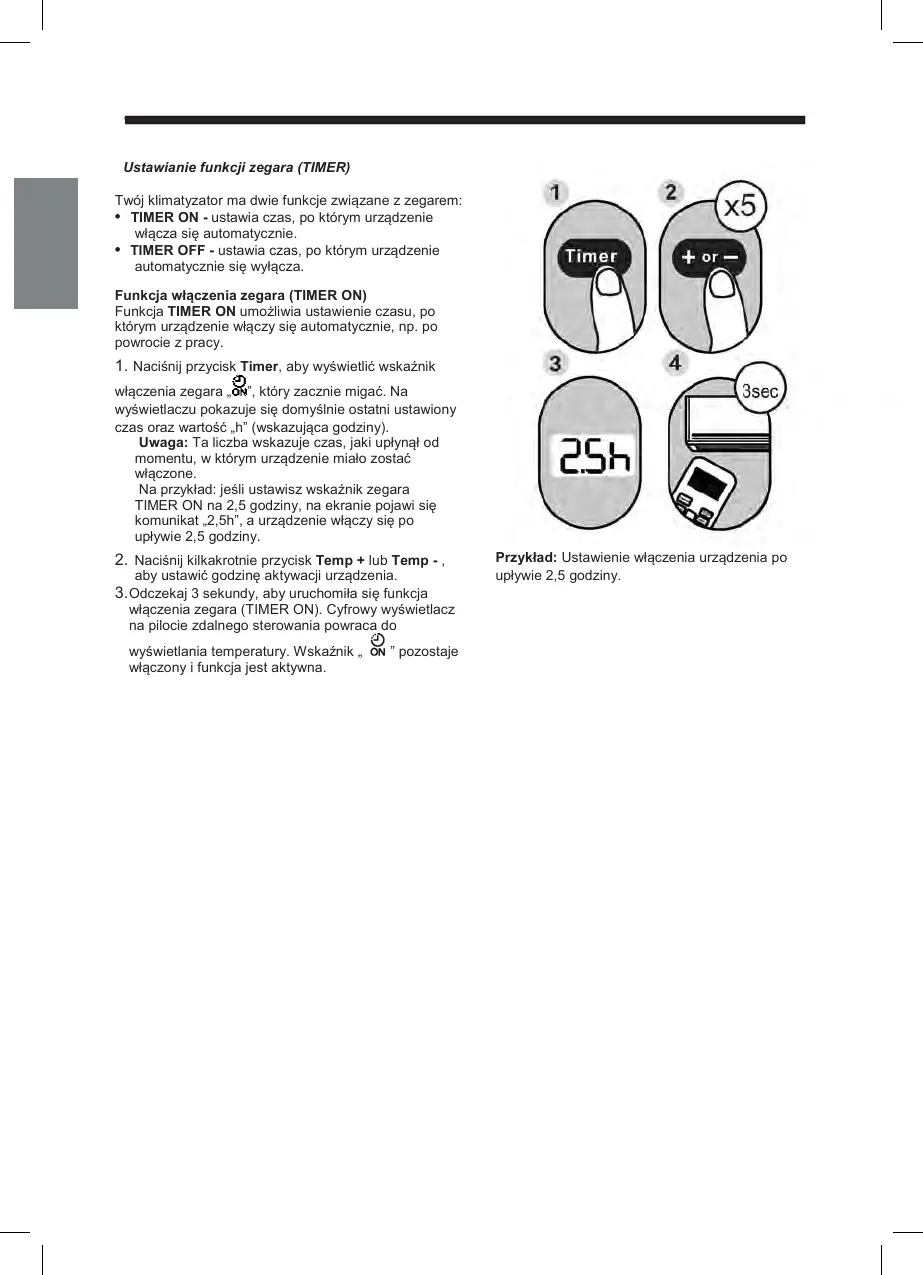 podczas ustawiania funkcji TIMER ON lub TIMER