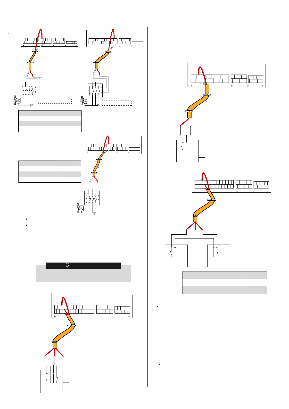 Istnieją trzy opcje podłączenia kabla termostatu (jak na powyższym rysunku),
