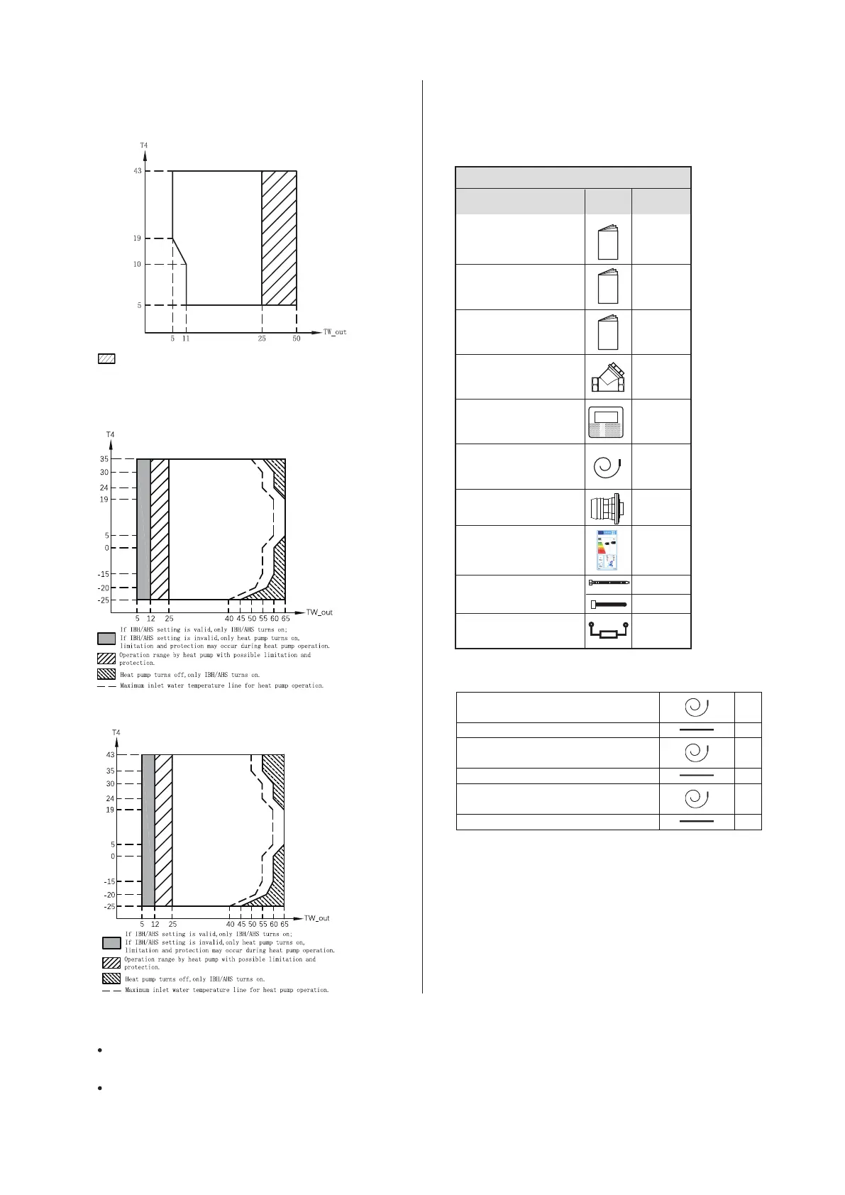 Operation range by heat pump with possible limitation and protection.