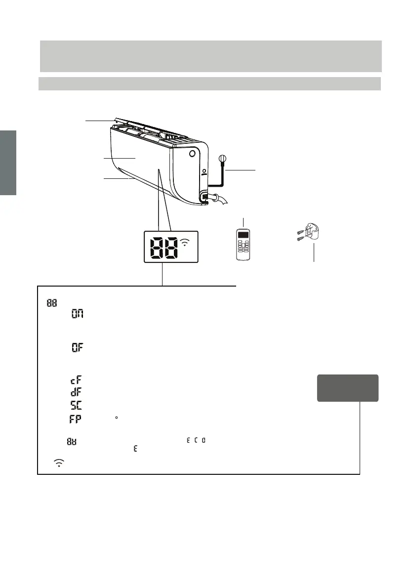 Displays temperature, operation feature and Error codes: