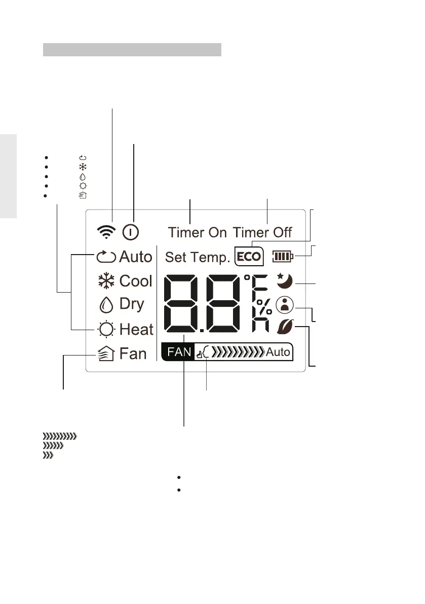 Domyślnie wyświetla ustawioną temperaturę lub ustawienia