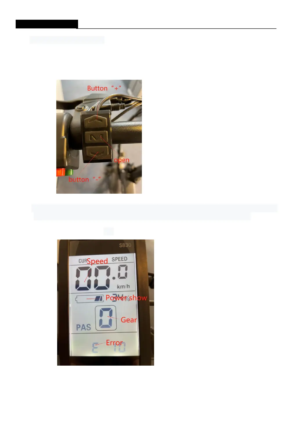 Drücken der Taste "+ -" 1-5 Gang stellen Sie die Geschwindigkeit des E-BIKE ein.