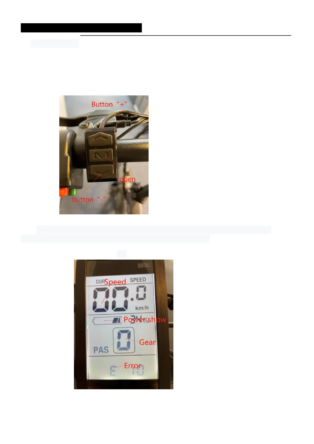 brevemente il pulsante "+ -". 1-5 marcia per regolare la velocità della E-BIKE.
