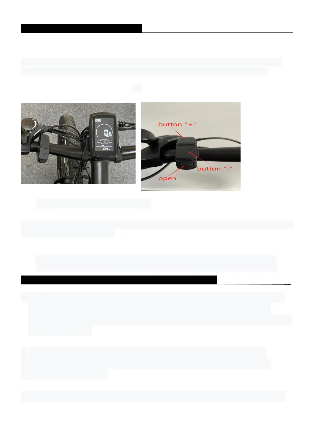 brevemente il pulsante "+ -" 1-5 marcia per regolare la velocità della E-BIKE