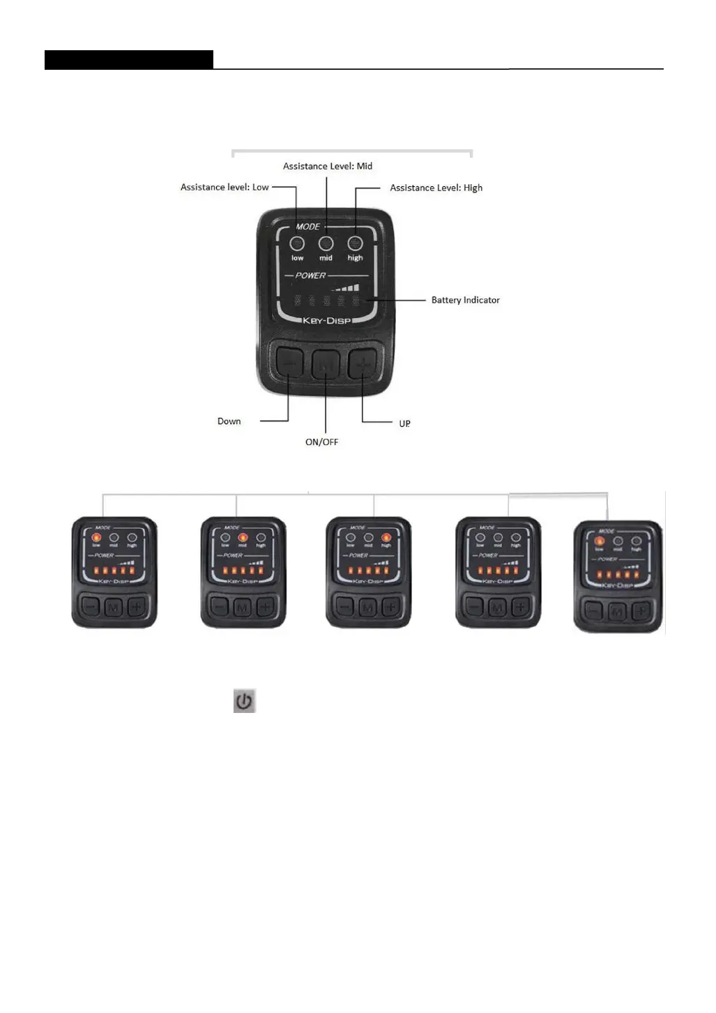 3.2.2: Press “+” to crease into pedal assist level “Mid”. Full Electric Function