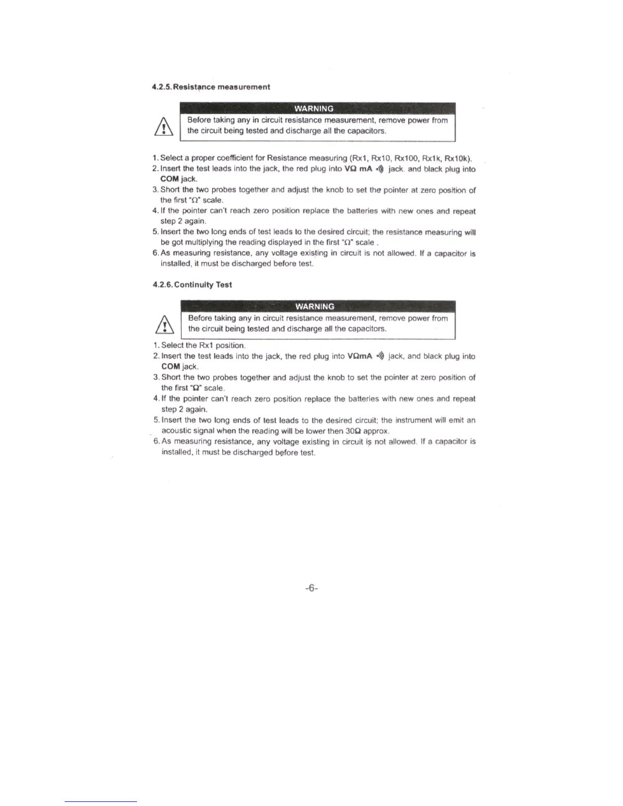 Kaise 7050 - Resistance Measurement; Continuity Test