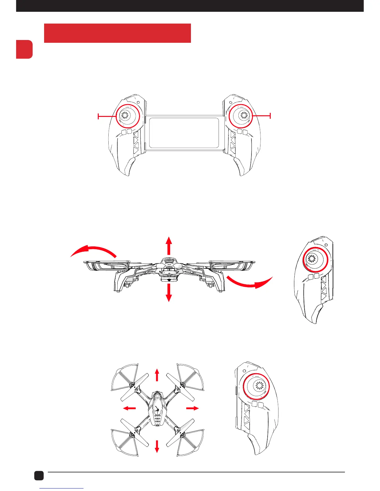 The Left Stick is known as the Throttle. This controls the Drone’s Elevation and Yaw.